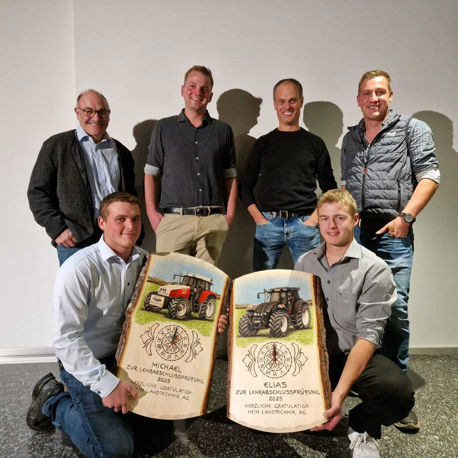 Wir sind stolz auf die super Abschlussnoten 5.1 von Elias (li) und 5.2 von Michael (re) und freuen uns euch weiter bei uns im Team als Landmaschinenmechaniker EFZ begrüssen zu dürfen. Zusammen mit den Familien durften wir diesen Abschluss auf der Schwägalp feiern.